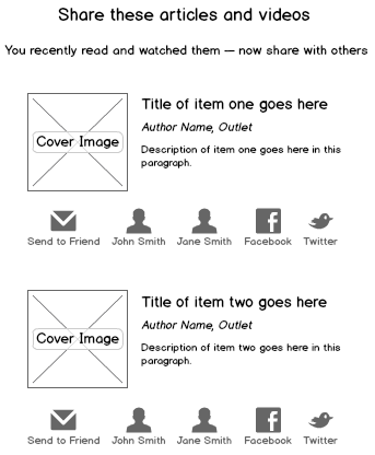 - If the user is on mobile and the Pocket app is installed on the device, tapping on a sharing icon would open the app and put the user into the app’s existing sharing mechanism to complete the share based on the selection they made in the email (e.g., tapping to share via Facebook)